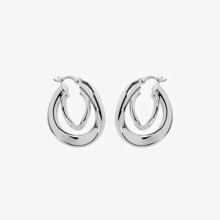 What could be more delightful than hoops that emit a silvery aura as you move? NAJO silversmiths have mirror-polished these double strudel hoops to ensure their glimmer never wanes. We love pairing these with a musical stack of radiant bangles.