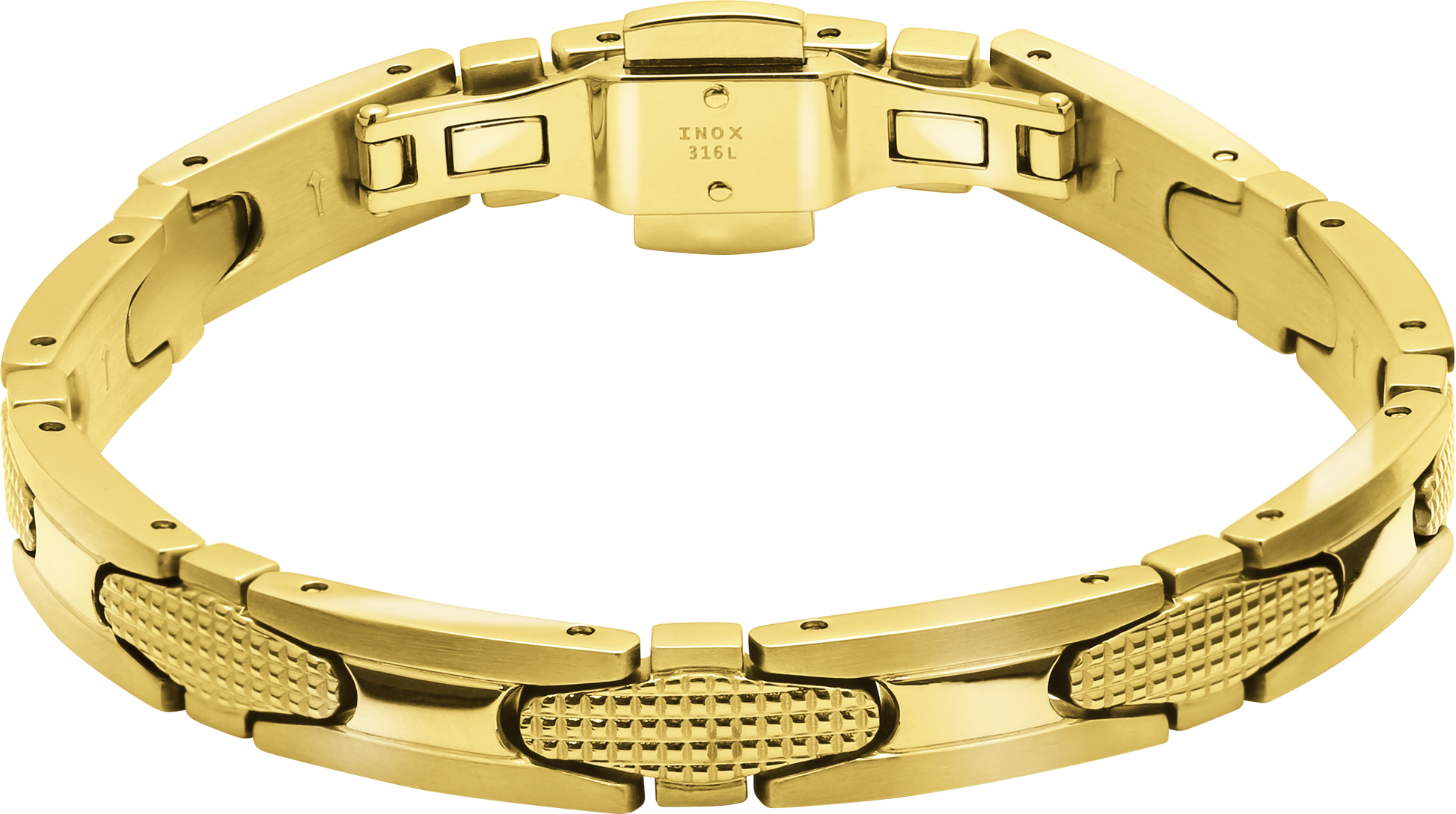 GATSBY 8mm IP GOLD STEEL. DIAMOND POINTS PATTERN AND BUTTEFLY BUCKLE. 21cm. ADJUSTABLE.